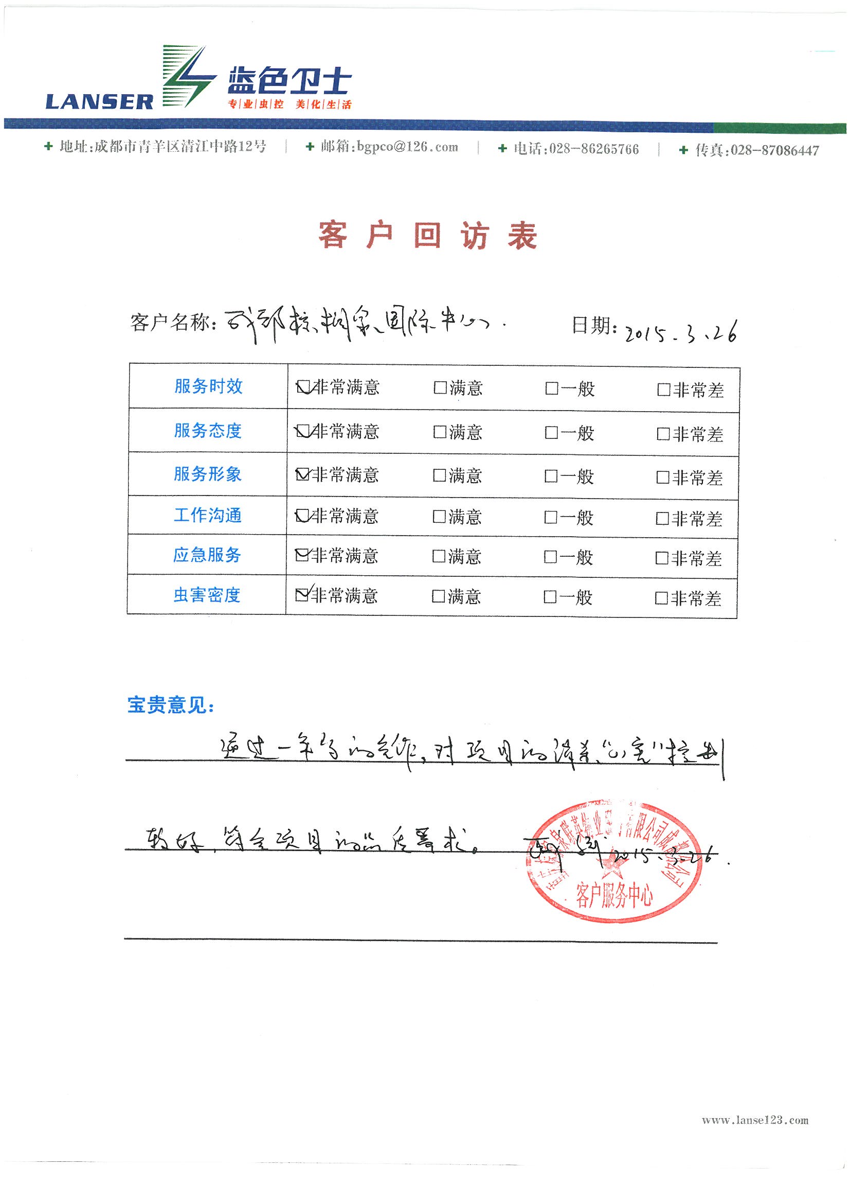 通過(guò)一年的合作,對項目的消殺、四害控制的較好,符合項目的品質(zhì)要求!